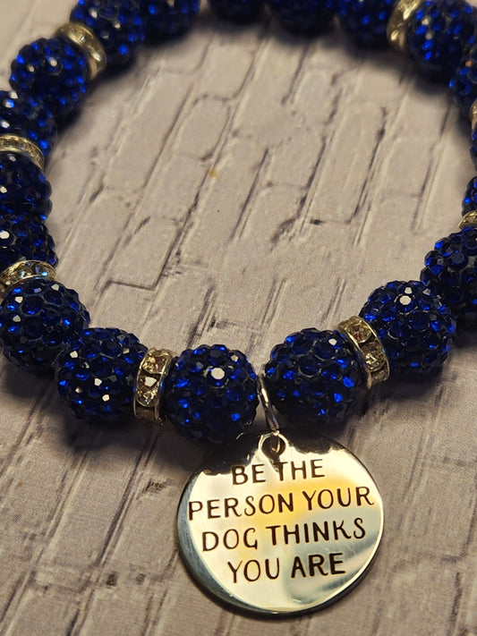 Bracelet: Be the person your dog thinks you are (blue rhinestones)