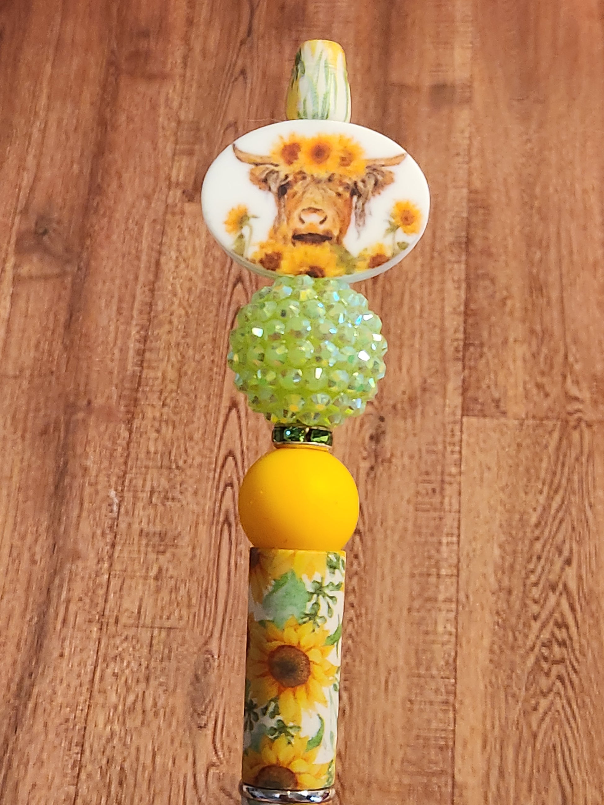 Beaded Pen: Cows (Highland Cow with sunflower headband)