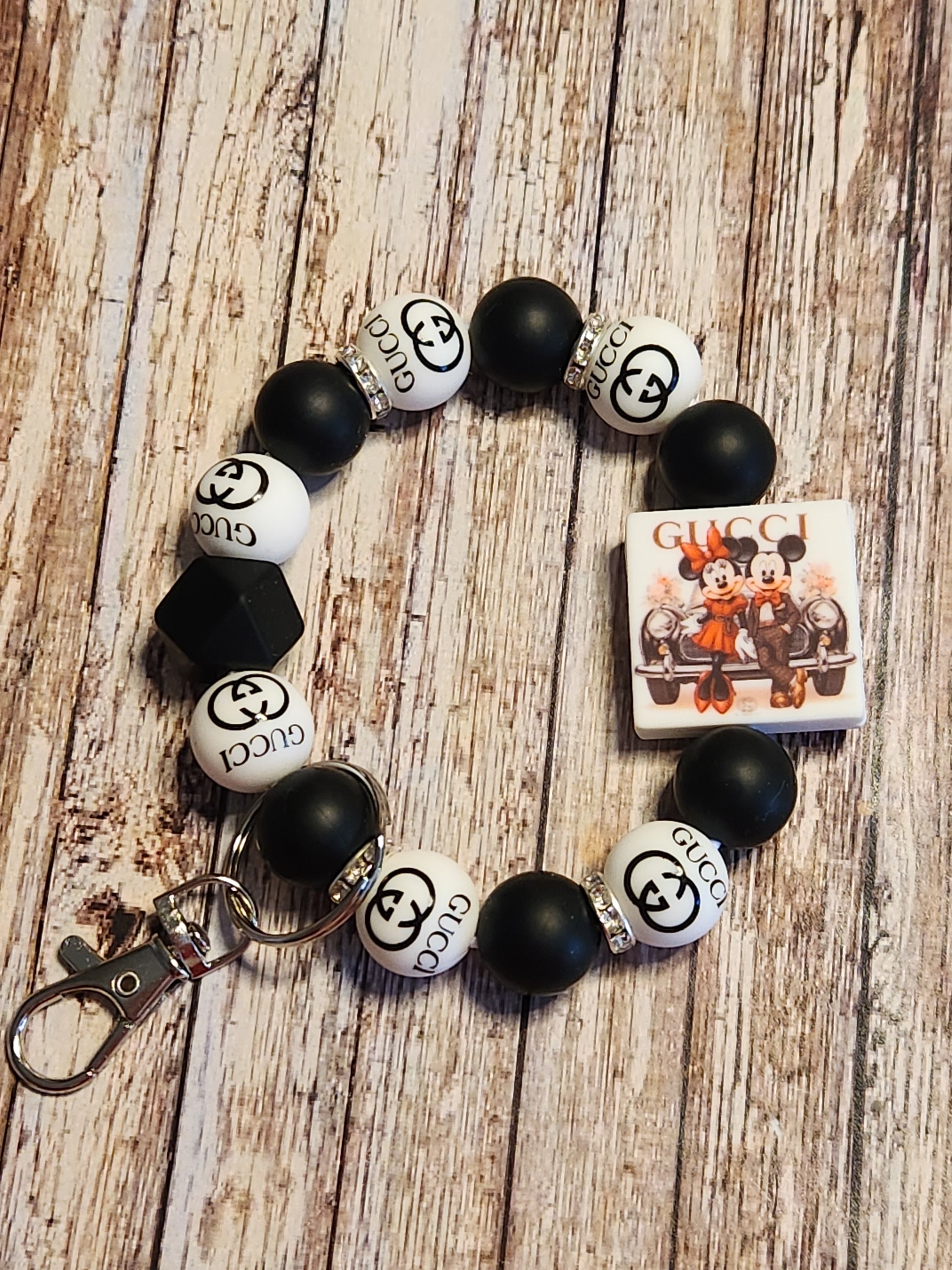 Features silicone beads on 2mm stretch cord with a silver keychain. Fits wrist size 6.5-8 inches comfortably. Keep this and all beaded items away from children and pets due to chocking hazards.