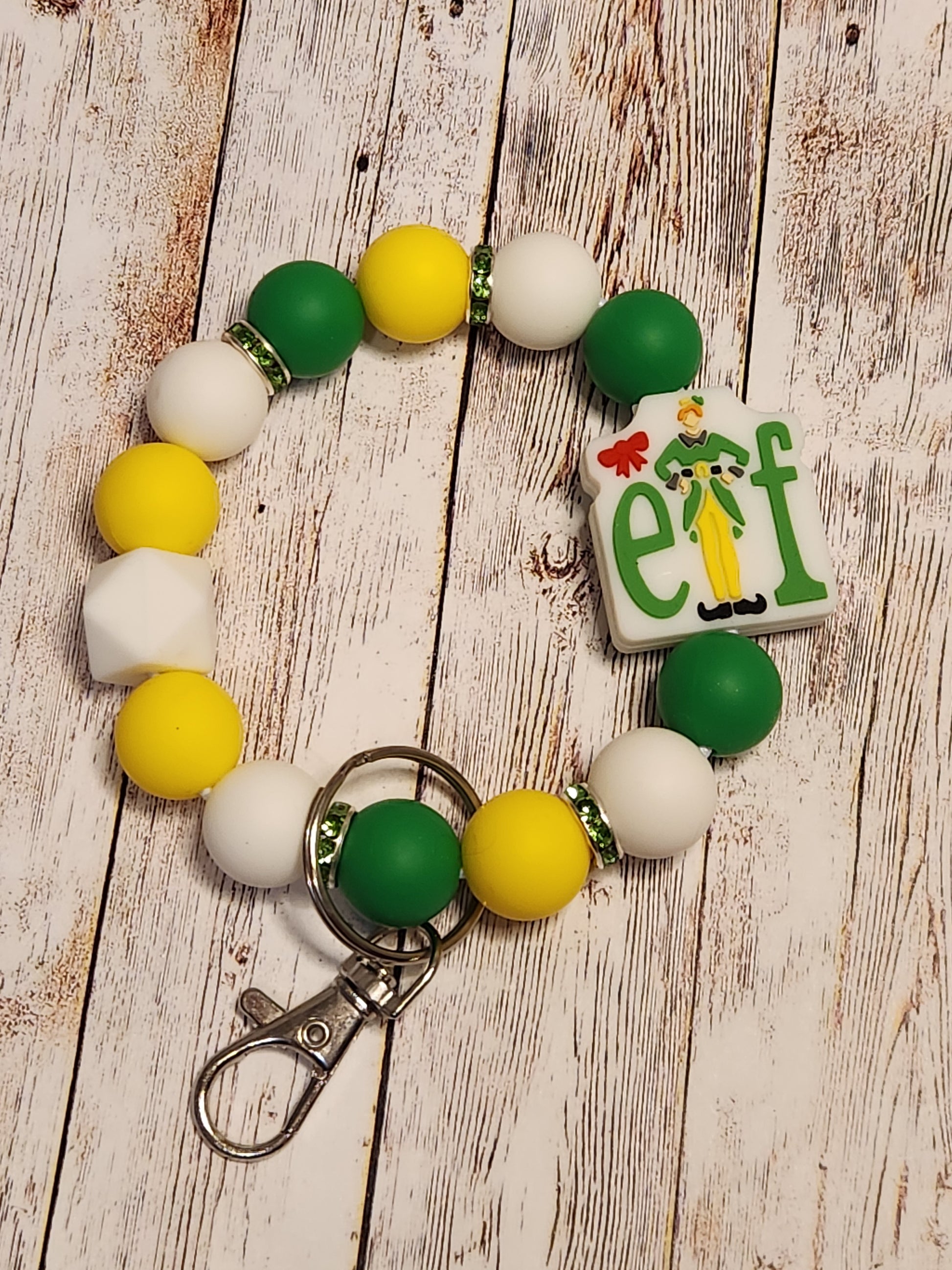 Features silicone beads on 2mm stretch cord with a silver keychain. Fits wrist size 6.5-8 inches comfortably. Keep this and all beaded items away from children and pets due to chocking hazards.